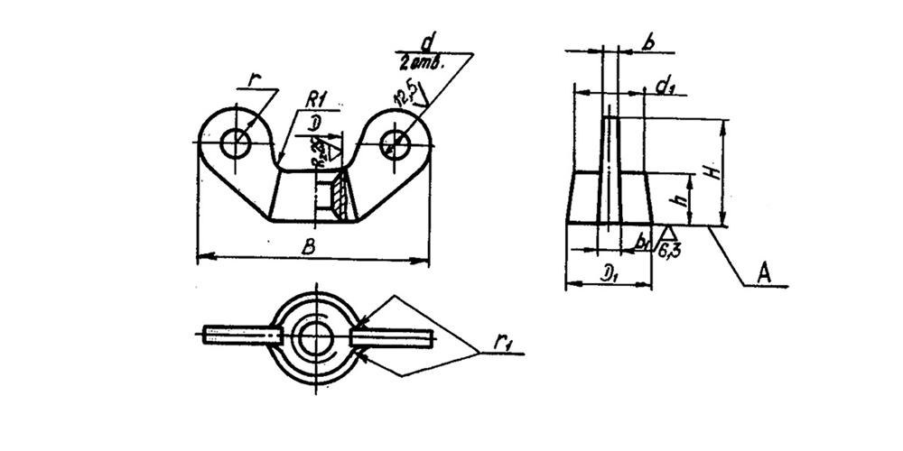 D | D1 | d | d1 | b | b1 | B | H | h | r | r1 | Масса 100 шт., кг |